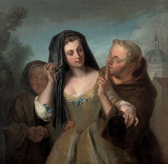 | The Secret: A young woman, accompanied by her duenna, with a monk | |