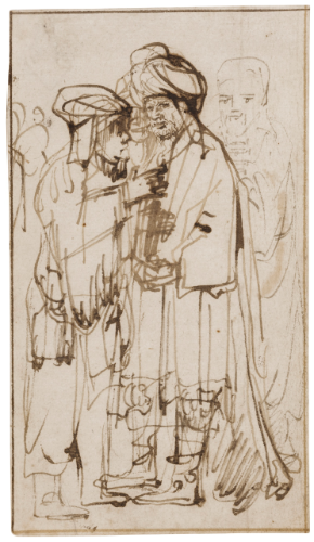 | RECTO: THREE STANDING MEN IN ORIENTAL DRESS VERSO: A CARICATURAL HEAD STUDY, DEPICTING A MAN AS AN ASS | |