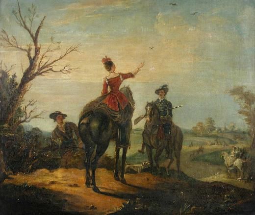 | Hawking Party, with a Noblewoman seated on a Horse Flighting Kestrels, with Attendants and Hawkers in the Distance | |