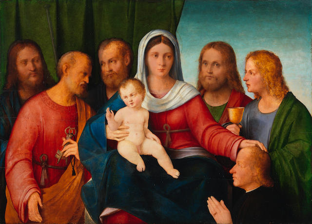 | The Madonna and Child with Saints John the Evangelist, James the Greater, Peter and others with a donor | |