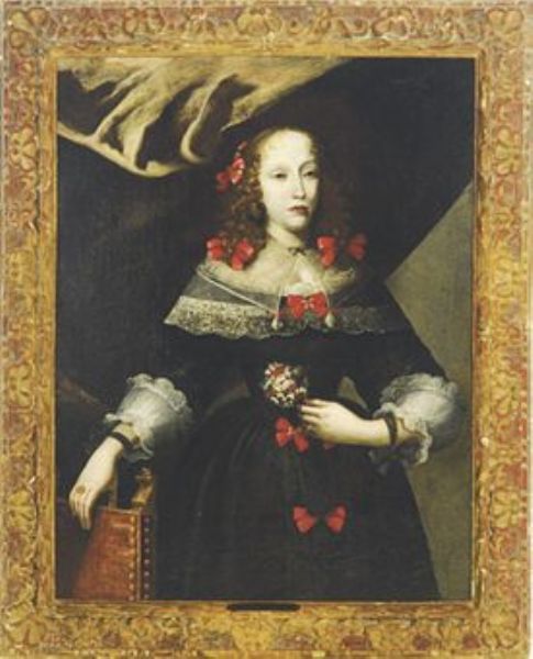 | Portrait of a lady wearing a black dress and red bows | |