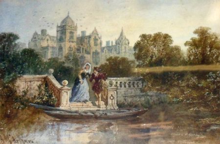 Figures Boarding a Punt by Country House in Elizabethan Period