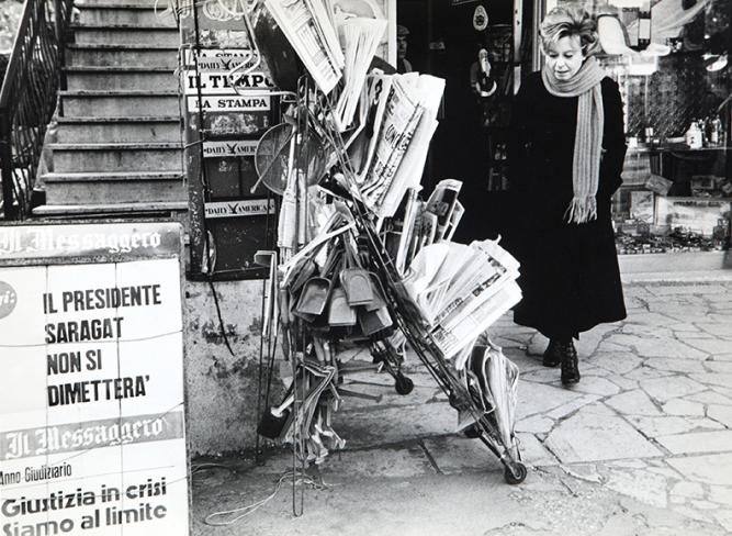 | Giulietta Masina at the newsagent’s in Fregene | |