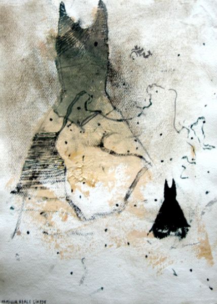 Mixed Media and oil on cardboard