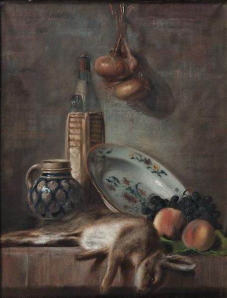 Nature morte au lapin, pêches et raisins