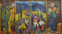 | Paysage au cactus, Travaux aux champs de lavande et bouquet | |