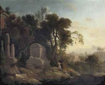 | Pyrame and Thisbe in a wooded landscape with classsical ruins | |