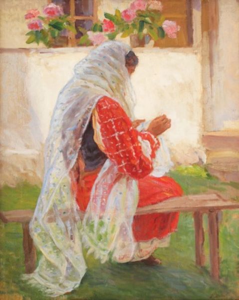 Ţărăncuţă brodând