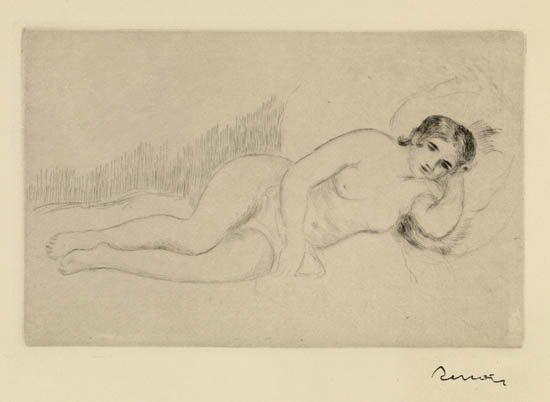 | Femme nue couché (tournée à droite), 1re planche. | |