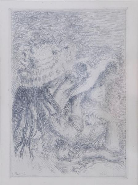 | LE CHAPEAU EPINGLE (La Fille de Berthe Morisot et sa Cousine), 3e planche (Delteil 8) | |