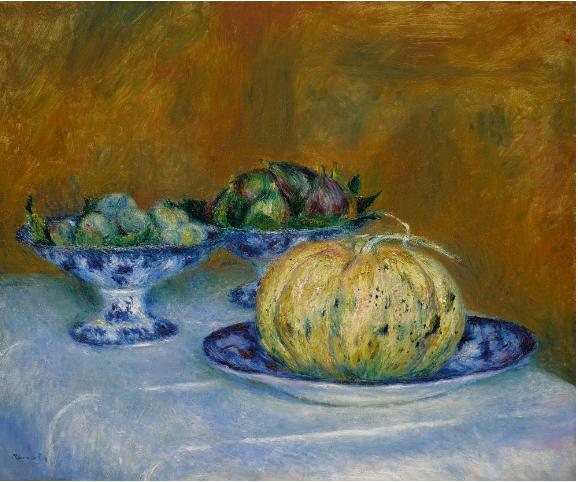 | NATURE MORTE AU MELON, AMANDES ET FIGUES | |