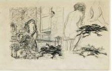 Double croquis : à gauche NU DANS UN INTERIEUR
