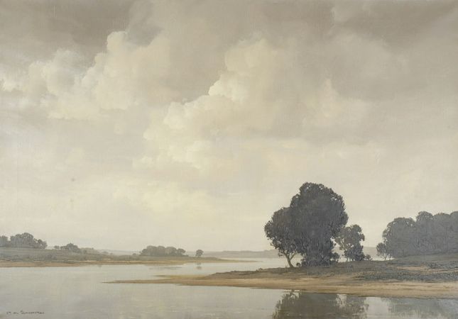 CLOUDS OVER BEND IN RIVER