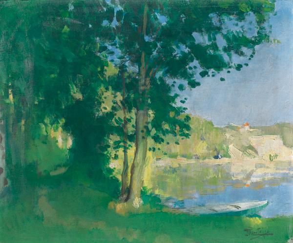 BARQUE AU BORD DE LA SEINE, VERS 1925-1930
