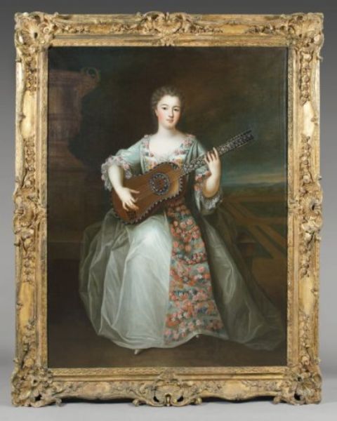 | Portrait présumé de Mademoiselle de Charolaix (1695-1758) "pinçant de la guitare" | |