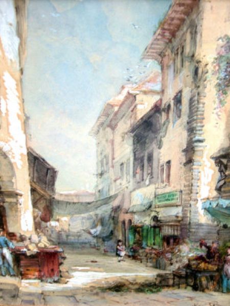 Figures in a European city street