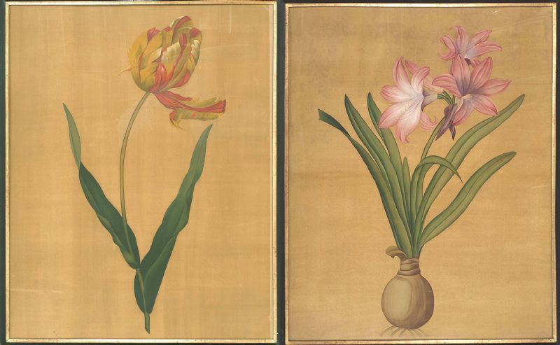 | Two paintings attributed to Chinese artist Hai Feng: depicting a pink Amaryllis and a variegated tulip | |
