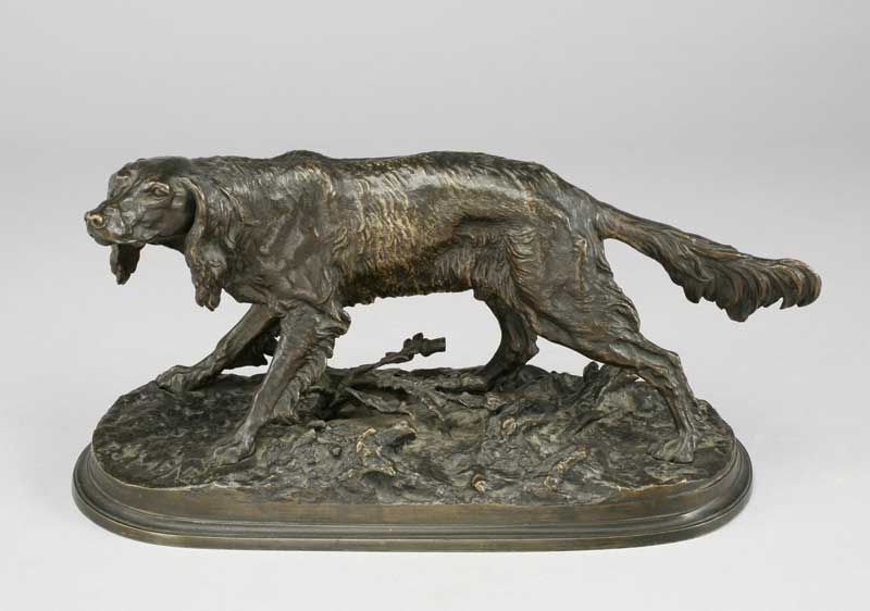 Figure of a spaniel mid-stride on a naturalistically molded base