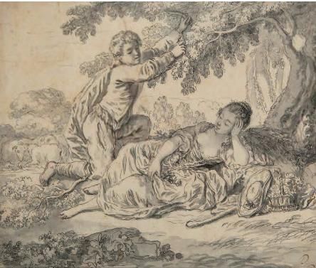 | An elegant assembly in a landscape; and Farmers and other figures gathered outside an inn | |