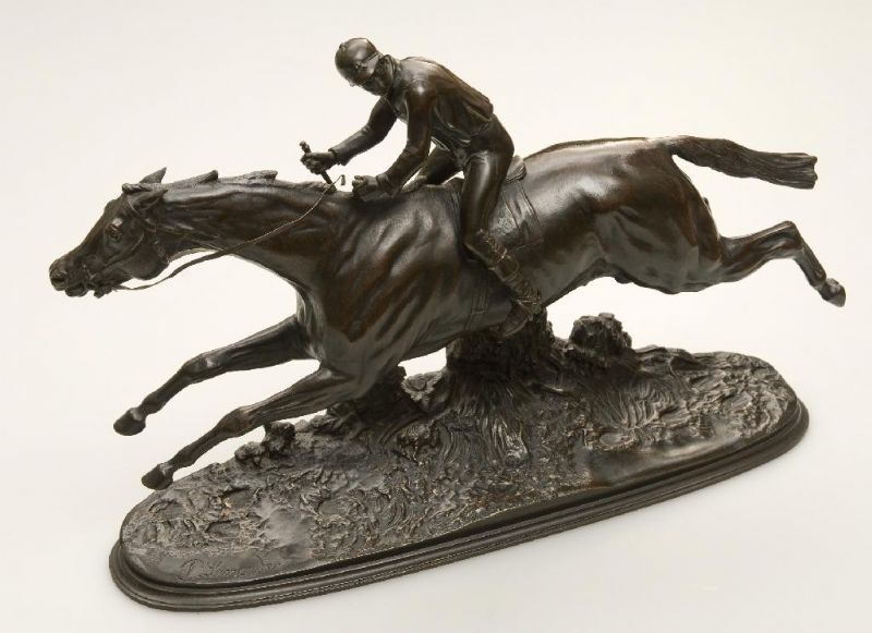 PATINATED BRONZE MODEL OF A HORSE AND JOCKEY