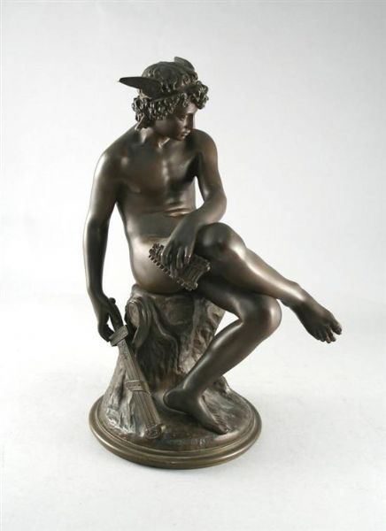 modelled seated holding a sword and pipes