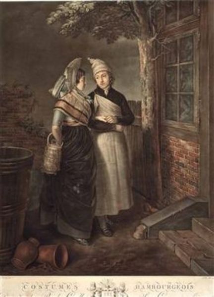 Zuckerbäcker-Geselle mit Mädchen in Hamburger Tracht