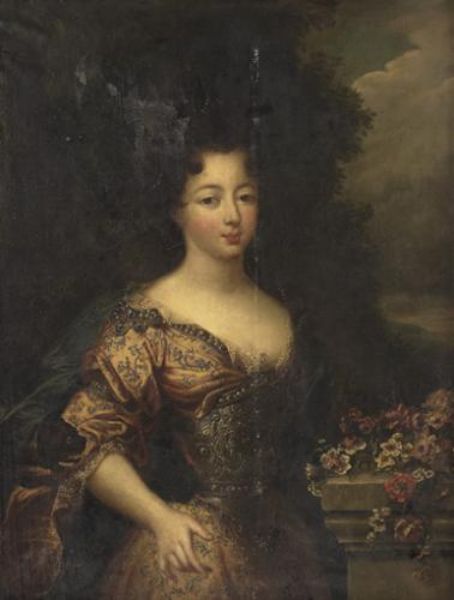 PORTRAIT OF A YOUNG LADY HOLDING FLOWERS