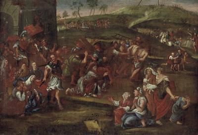 | Kreuztragung Christi mit Simon von Kyrene, den beiden Schächern, den Frauen von Jerusalem und vielen weiteren Personen (1684) | |