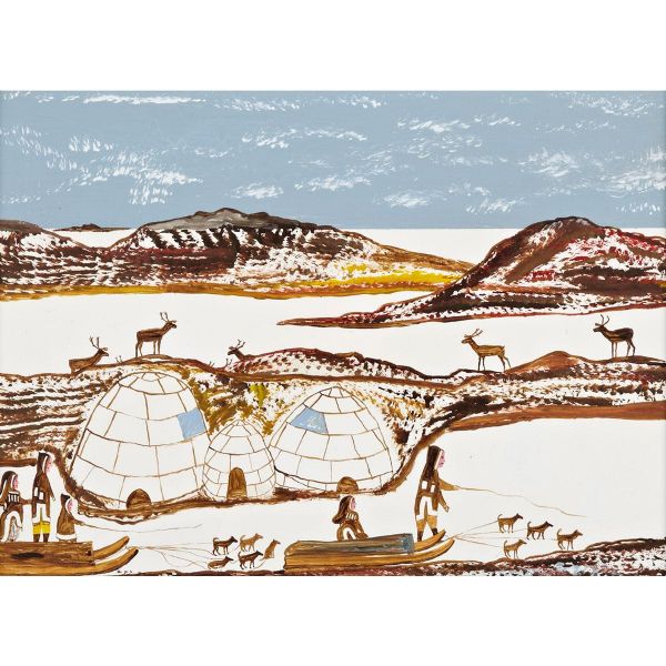 CAMP SCENE WITH KOMATIK AND CARIBOU