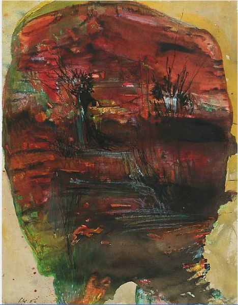 Watercolor indian ink and crayon on paper