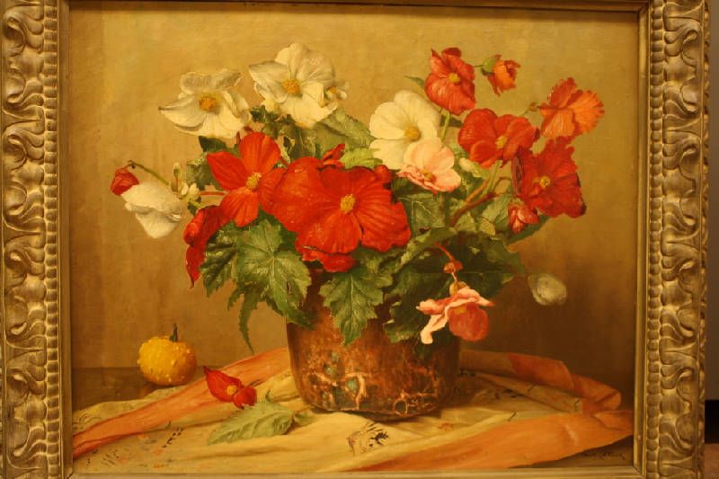 Stilleven met begonia en pompoen