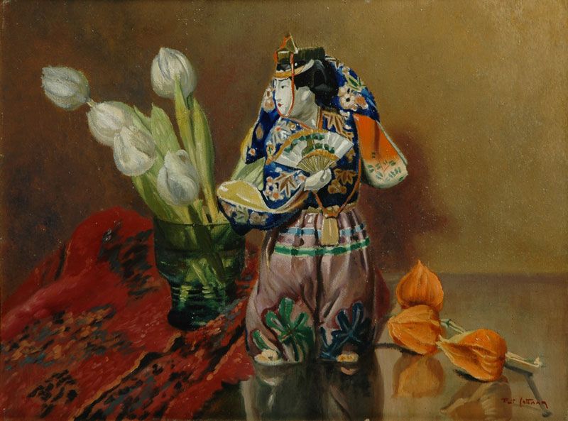 Stilleven met Geisha en tulpen