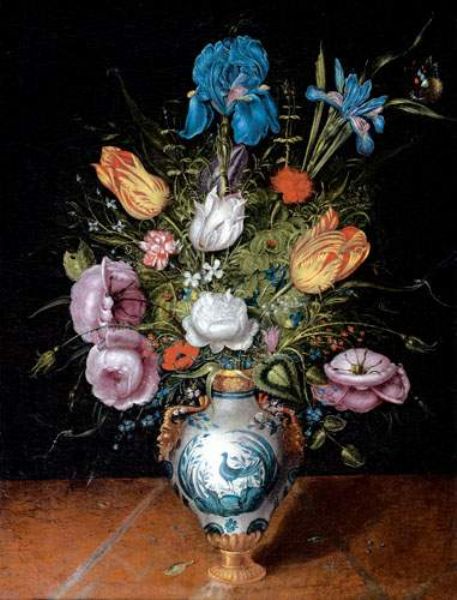 Nature morte au bouquet de fleurs dans un vase à monture de bronze