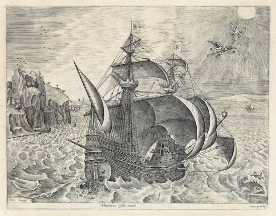 | Man of War Sailing to the Right, with Daedalus and Icarus. | |