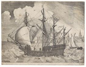 Nach - Bewaffneter Viermaster, in See stechend. Um 1560.
