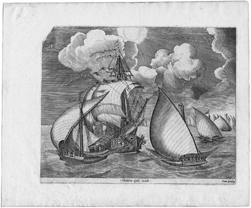 Eine Galeerenflotte in Begleitung einer Karavelle