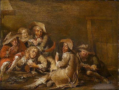 Soldiers playing cards in an interior