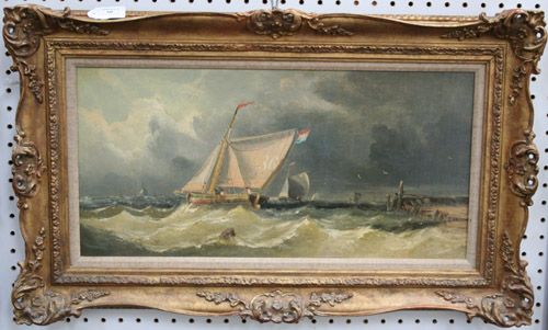Dutch Coastal View with Sailing Boats near a Harbour Wall
