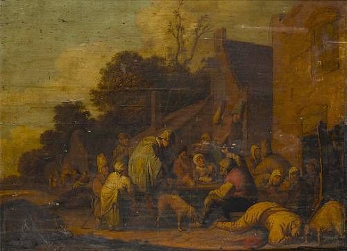 Peasants carousing outside a country inn