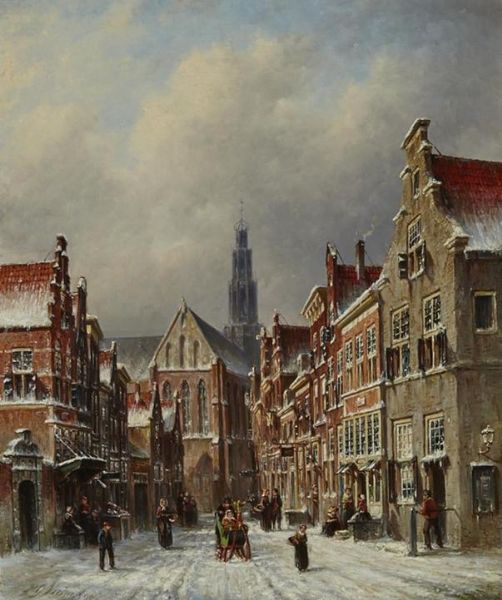 DUTCH TOWN IN SNOW WITH SLEIGH