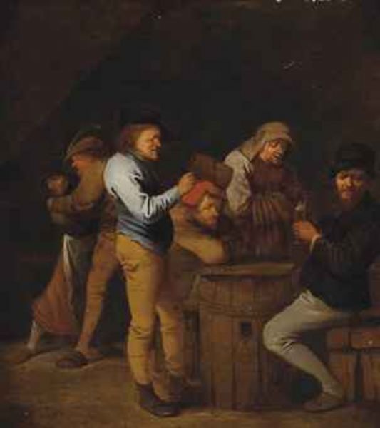 A tavern interior with peasants drinking