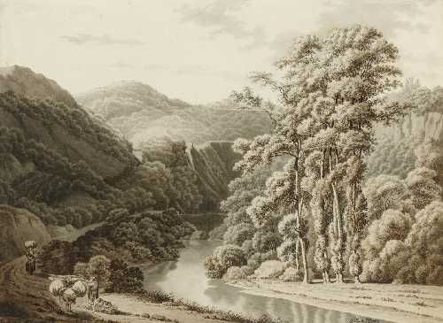 Bewaldete Flusslandschaft mit bäuerlicher Figurenstaffage