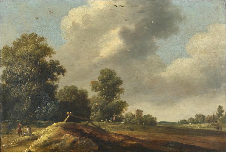 SUMMER LANDSCAPE WITH FIGURES AND GRAZING CATTLE