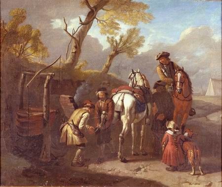 UNE HALTE DE CAVALIERS CHEZ LE MARECHAL FERRANT