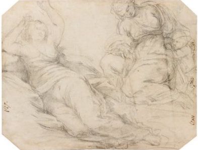 | Étude pour deux personnages du plafond du palais Barberini à Rome Pierre noire | |