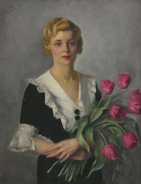Portrait of Marcia Holding Tulips.