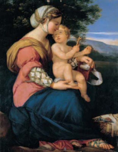 MADONNA MIT DEM KIND UNTER EINEM BAUM SITZEND