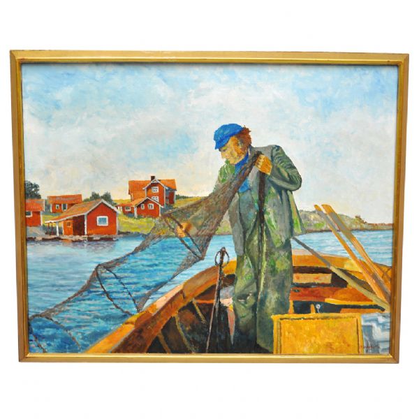 Scenes of fishermen with nets. Verso "Carl Claesson from Jutland Pietro Dalla-Santa 1976."