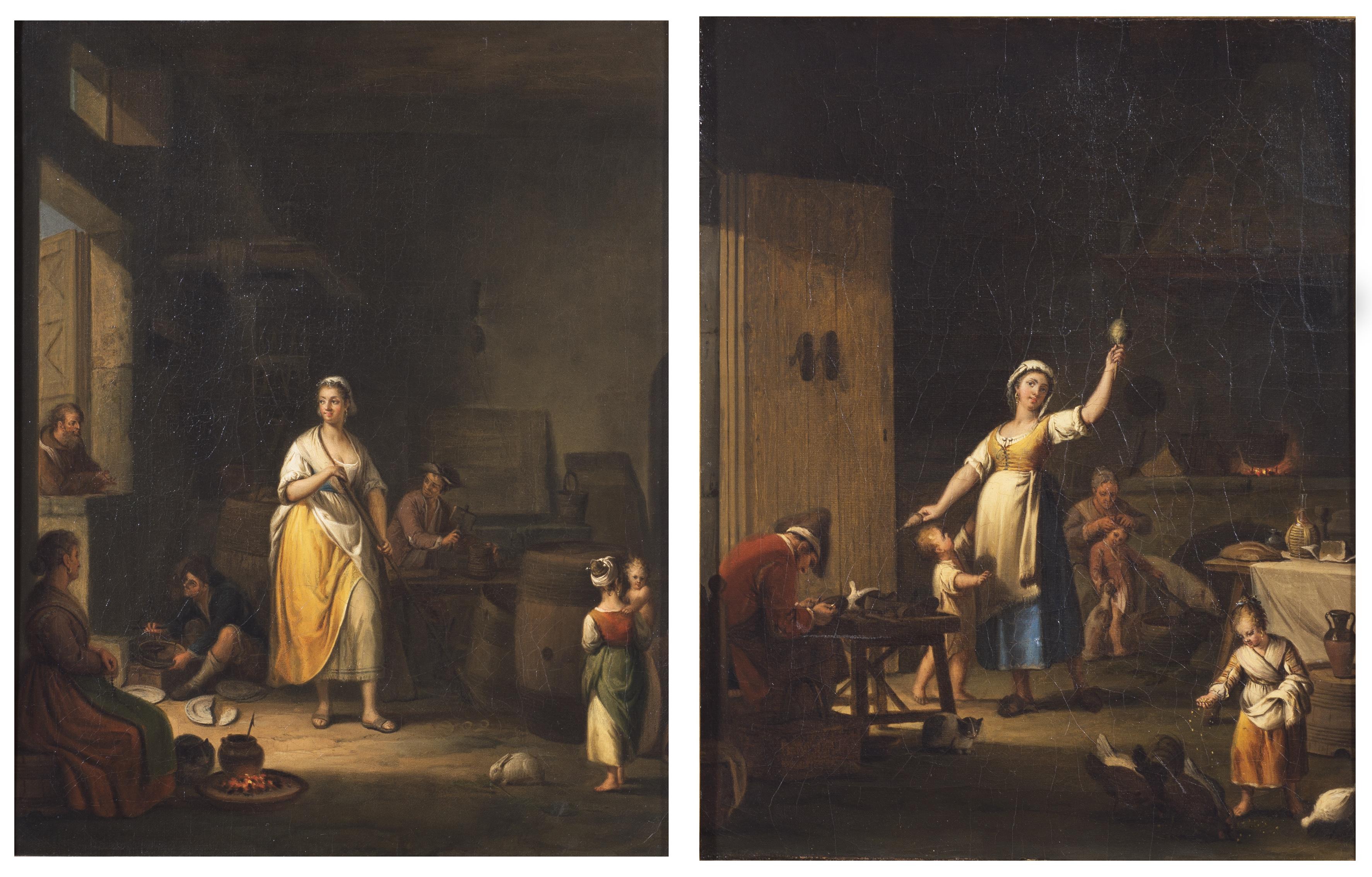 | a) Interno napoletano con figure e l' "acconciapiatti" b) La casa del ciabattino | |