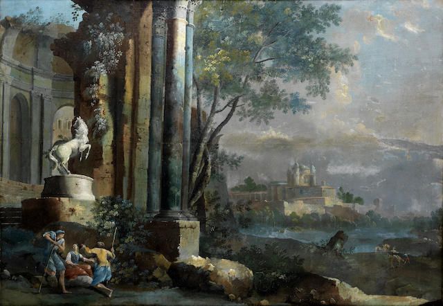 Figures in an architectural capriccio